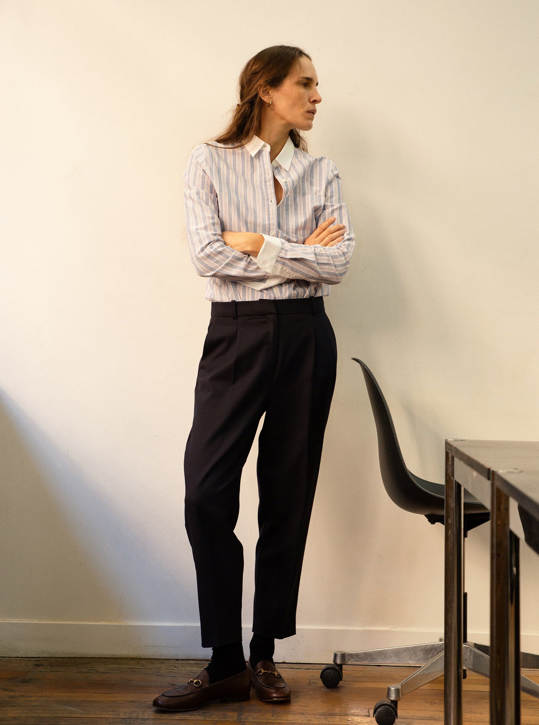 The Leila shirt features a straight, slightly oversized cut — the perfect blend of comfort and elegance.