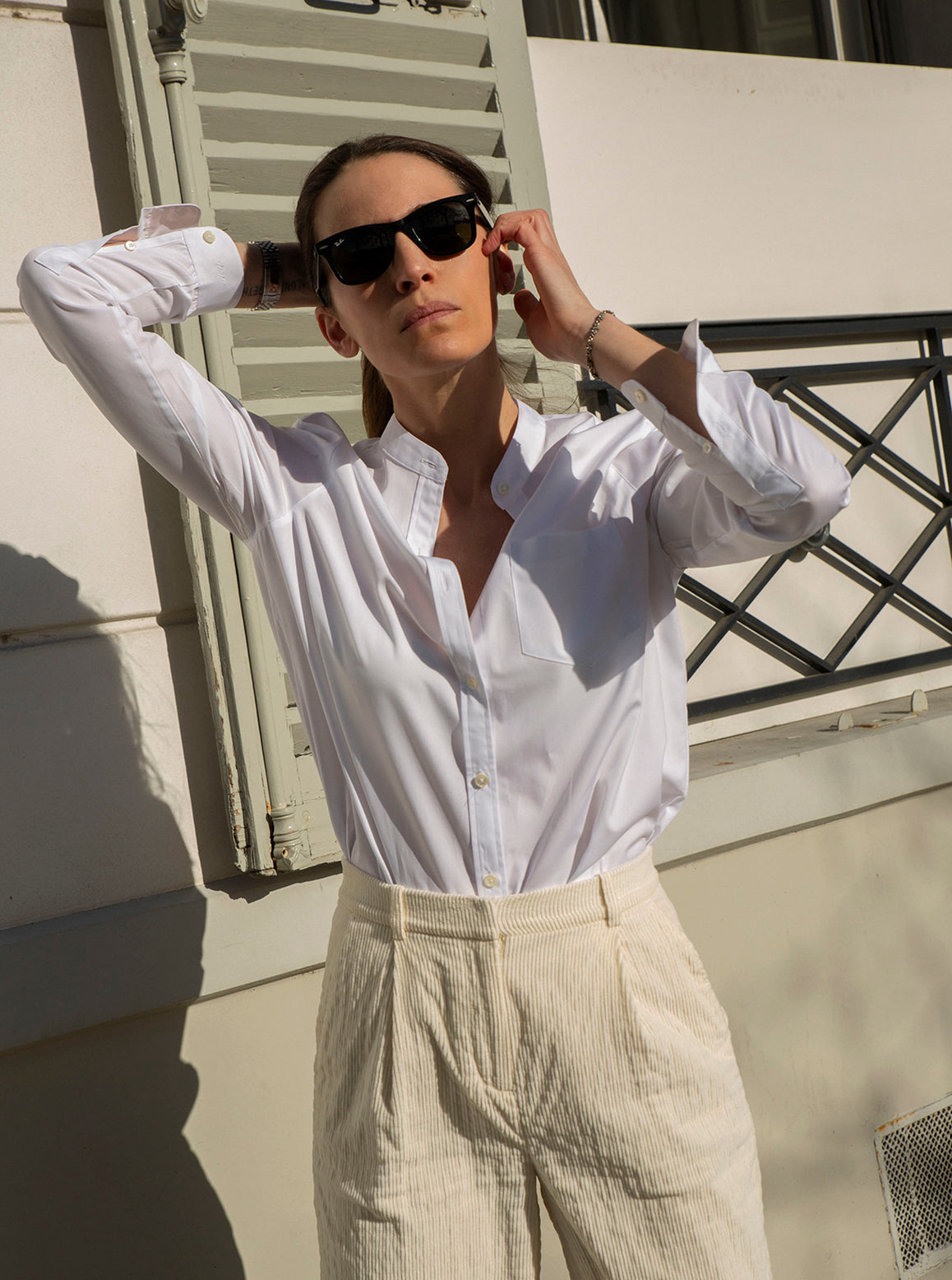 Clean and structured, this officer-collar shirt captures the essence of Marie Marot — timeless, menswear-inspired, and made for all women.