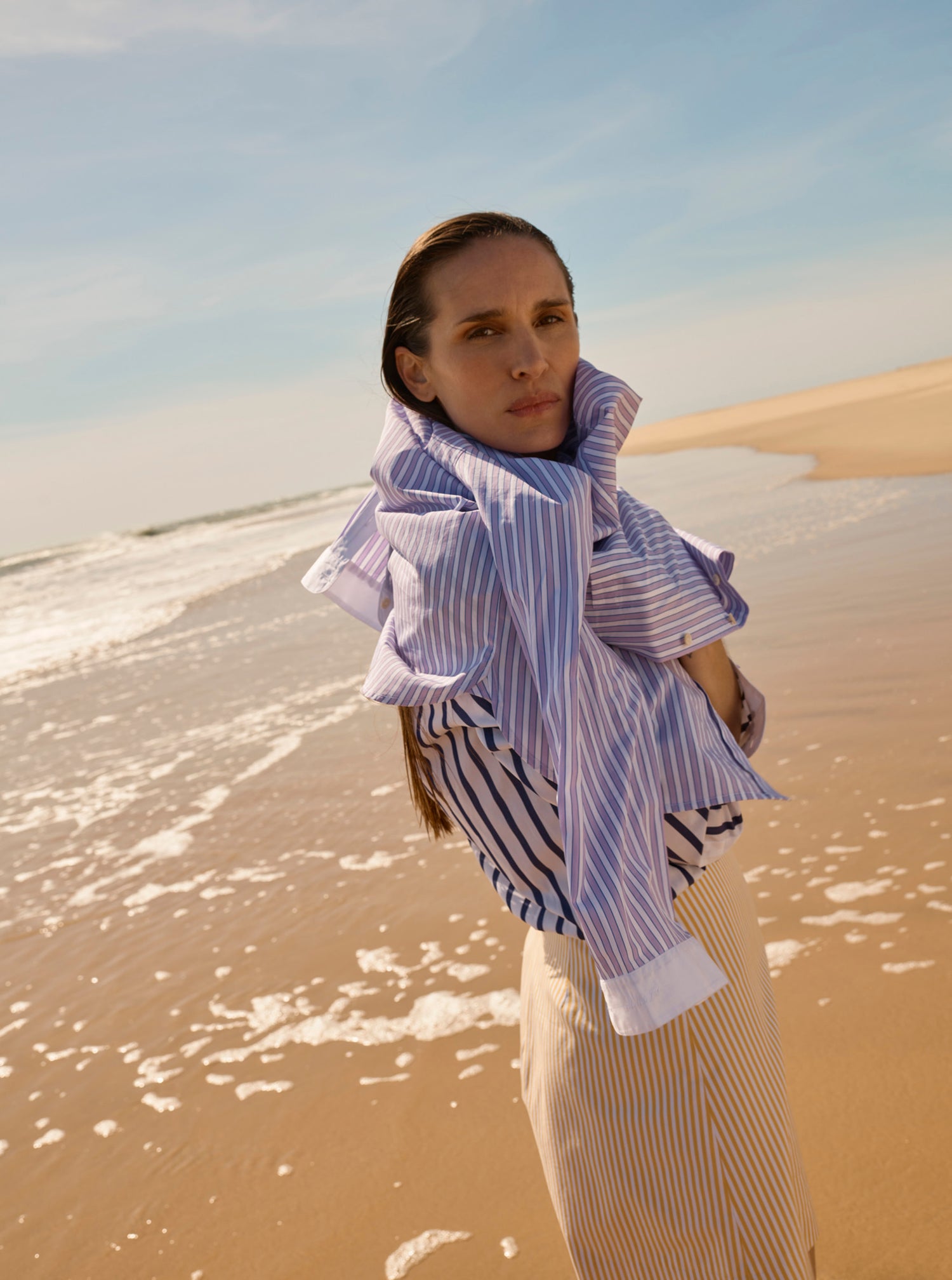 Introducing our latest collaboration with the Parisian designer: a capsule of menswear-inspired pieces with a summery, South-of-France spin. Learn more about the collection, and see how she puts it all together on the shores of French beach town Cap Ferret…