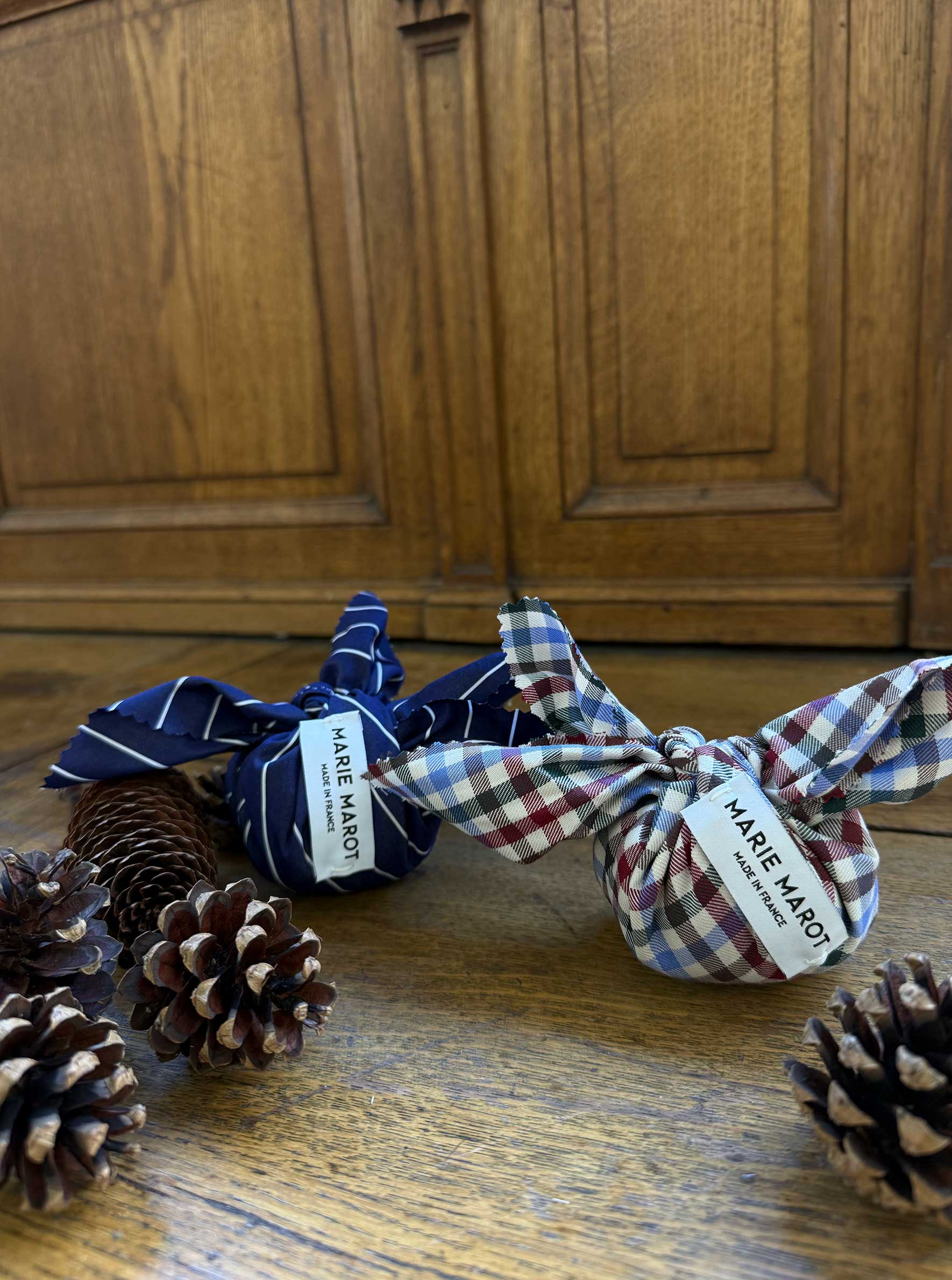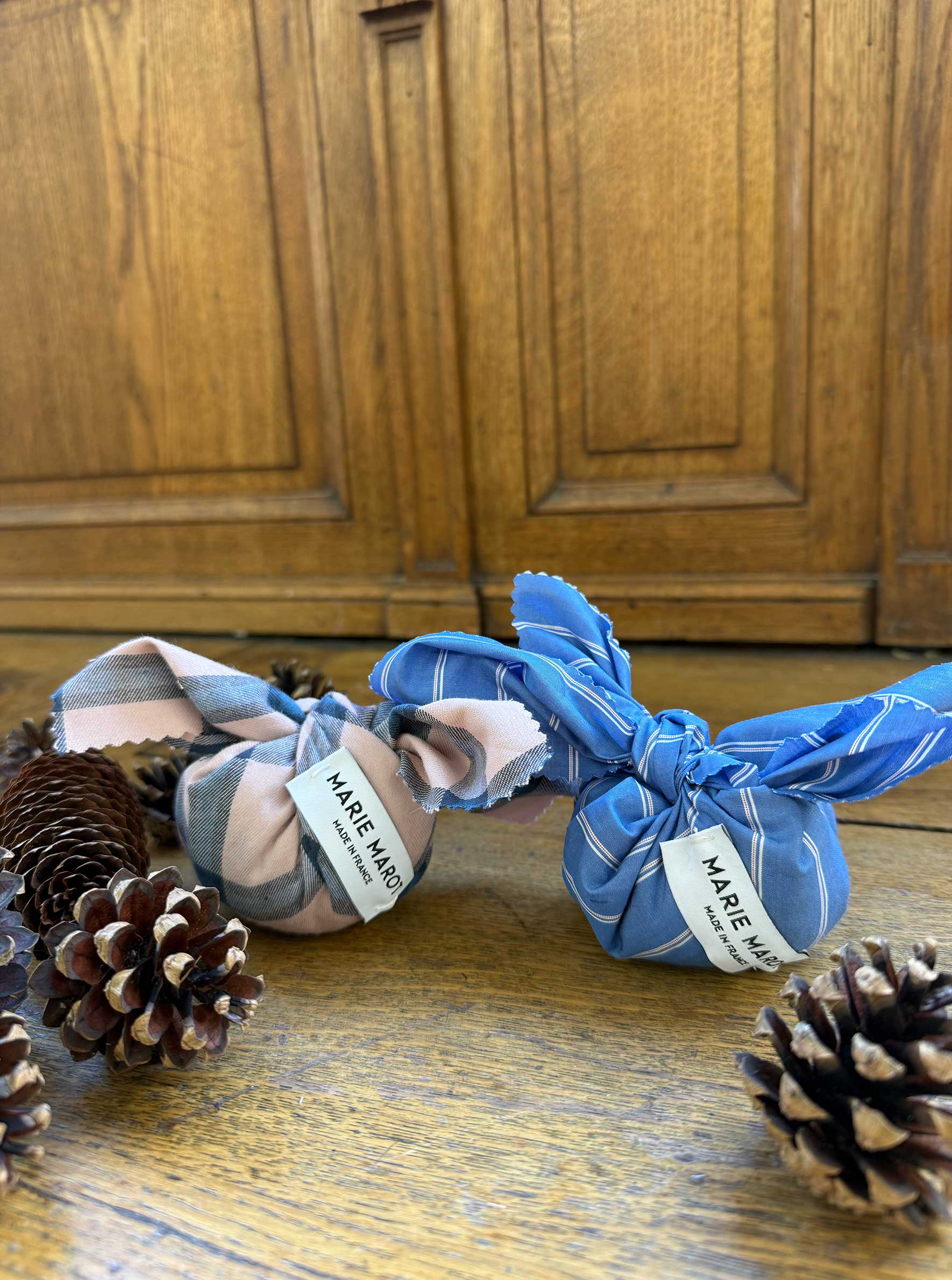 Made with the scraps of our shirt fabrics, well tied, slip these lavender furoshikis into your wardrobes, dressers, handbags or under your pillow.100% natural Provencal lavender, known for its antibacterial and relaxing properties.