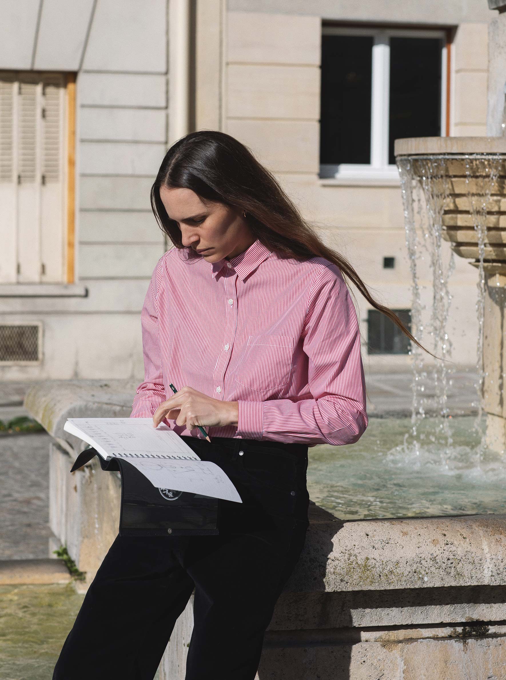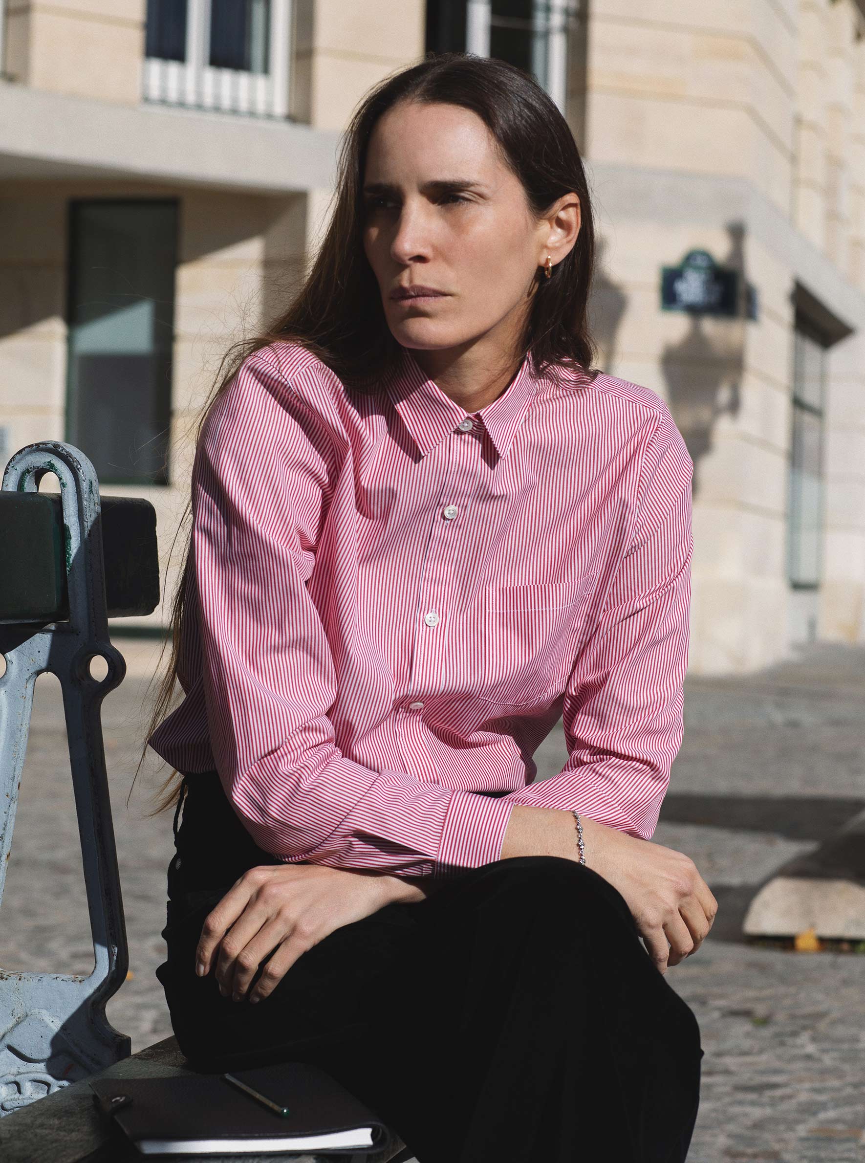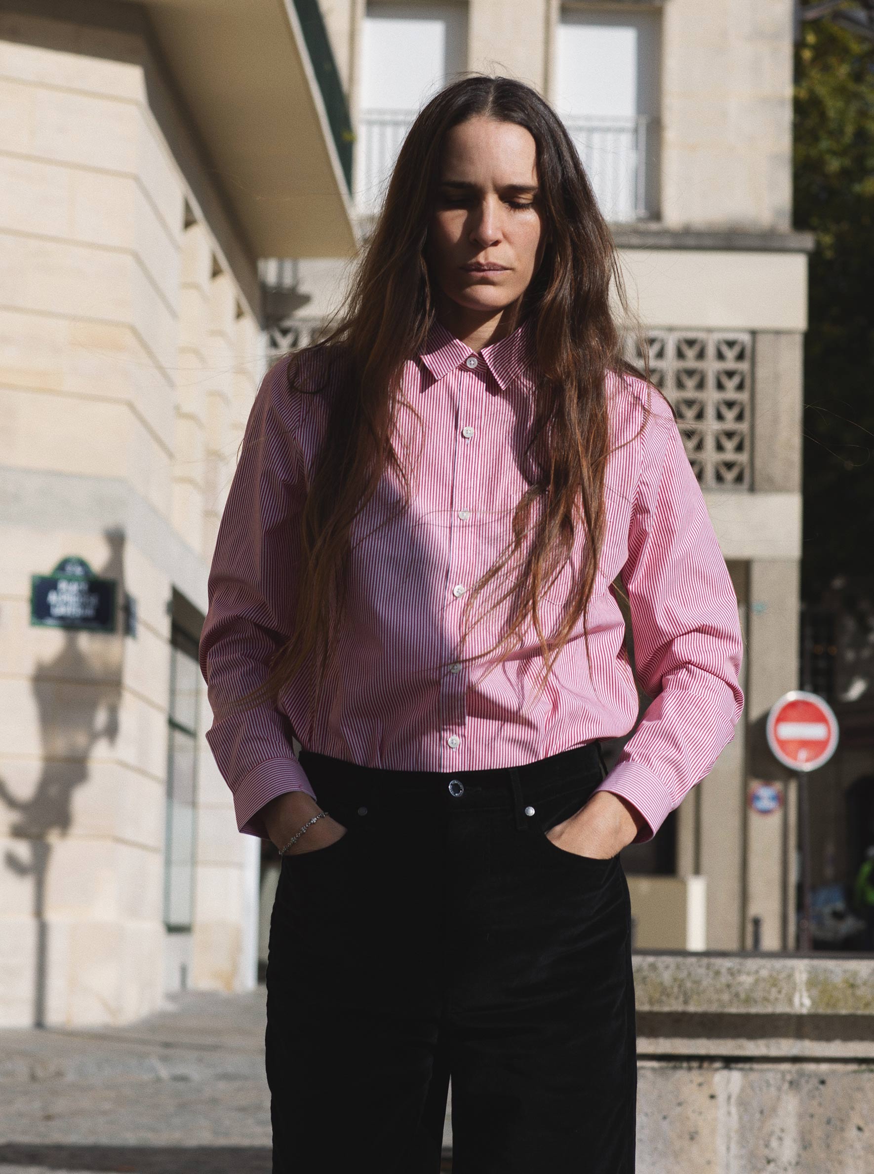The Gabrielle shirt features a straight, slightly oversized cut — the perfect blend of comfort and elegance.