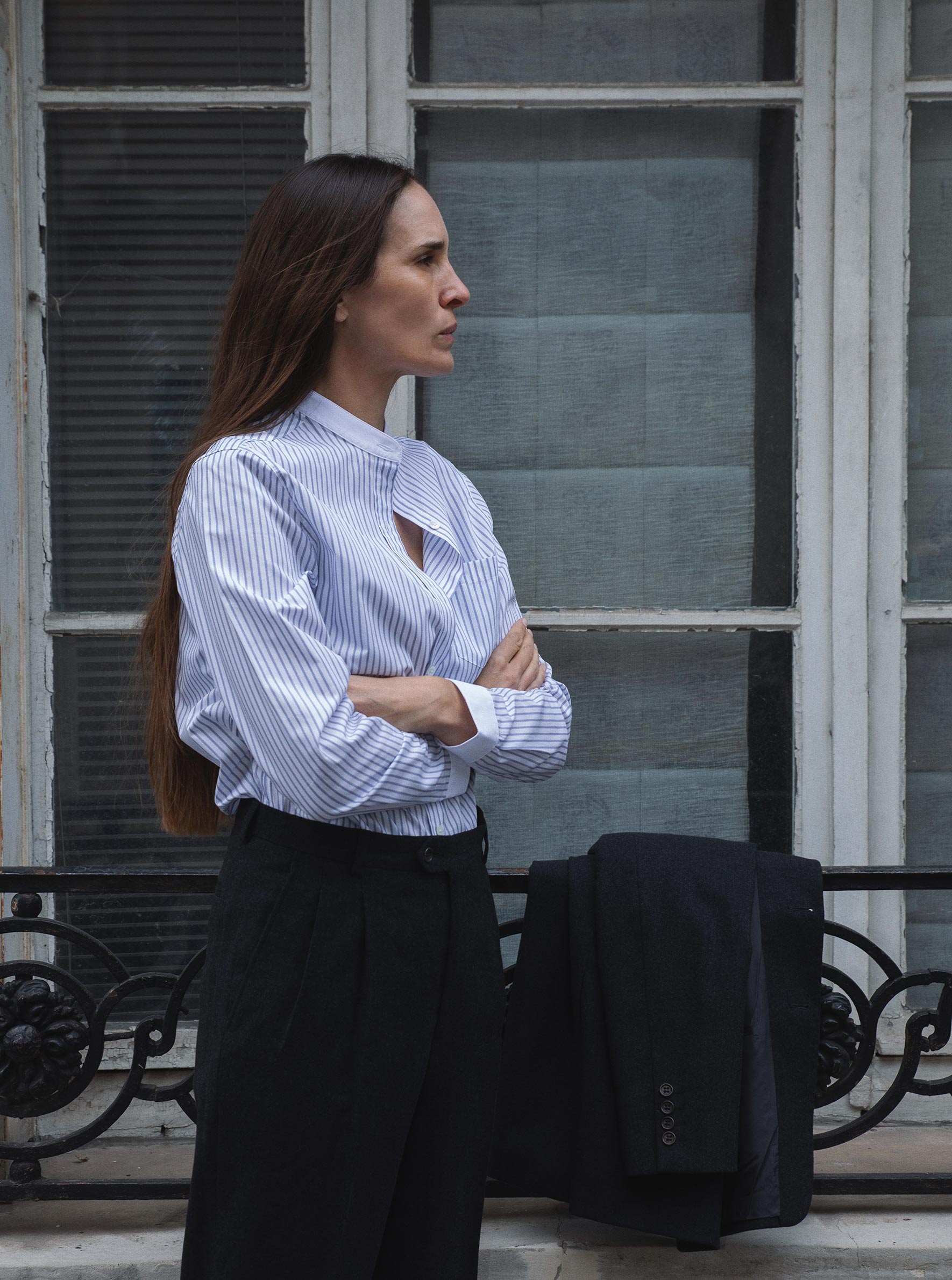 Clean and structured, this officer-collar shirt captures the essence of Marie Marot — timeless, menswear-inspired, and made for all women.