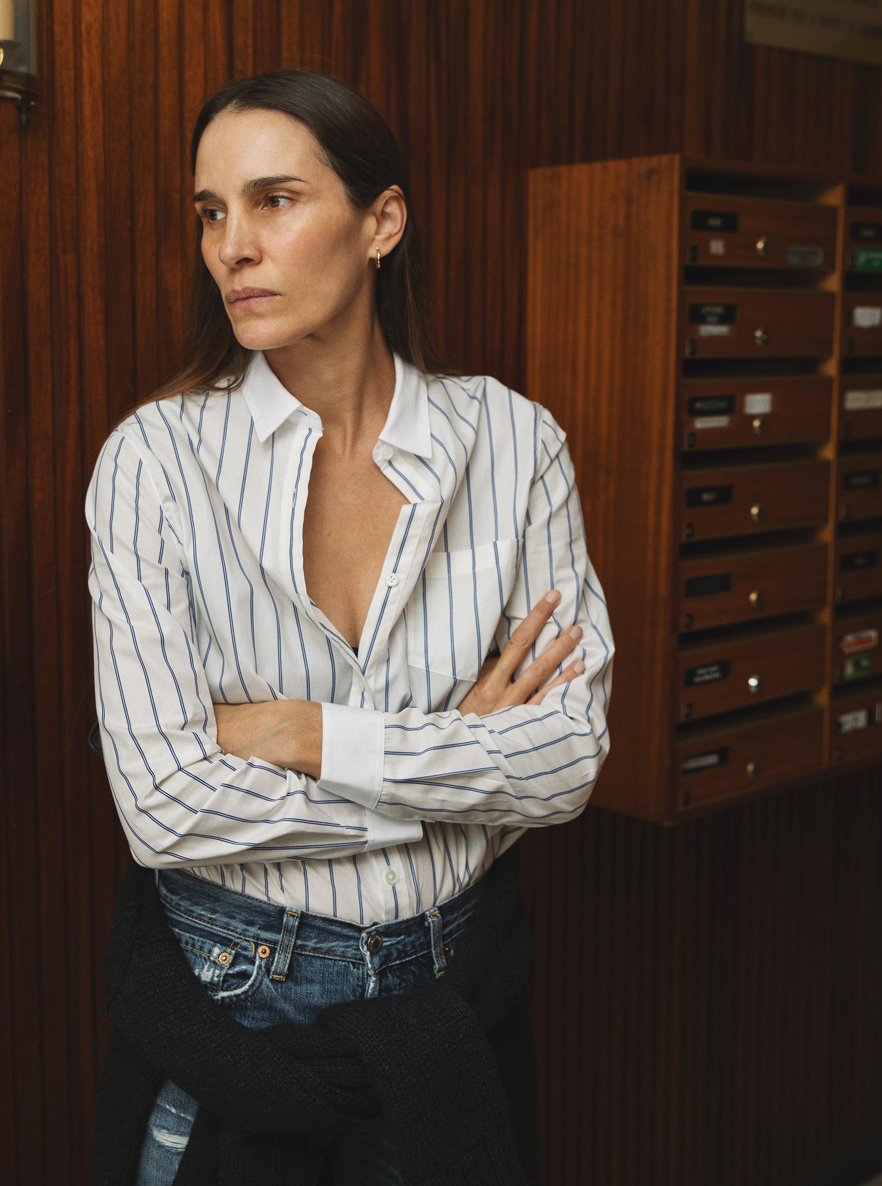 The Olivia shirt features a straight, slightly oversized cut — the perfect blend of comfort and elegance.