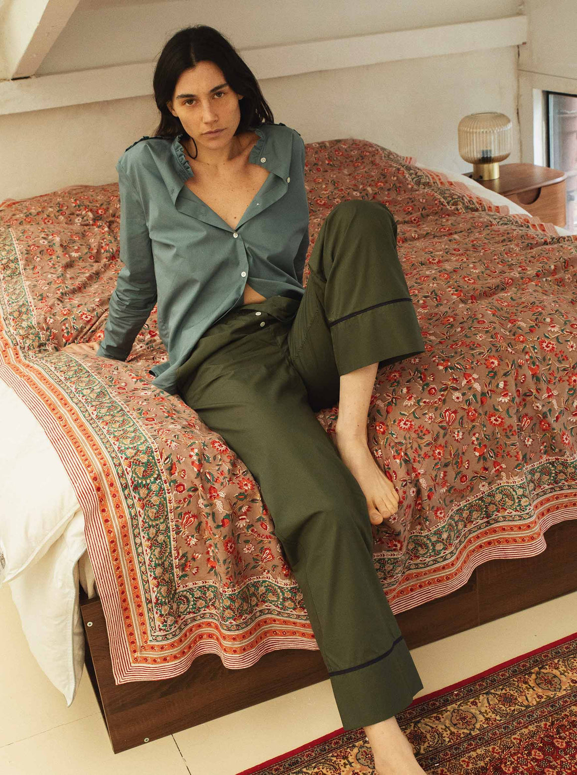 These pajama pants were designed to accompany your moments of comfort, day and night. They combine a loose, relaxed fit with thoughtful details for a look that's both simple and elegant. The soft, subtle fabric makes them a must-have in the Marie Marot wardrobe.