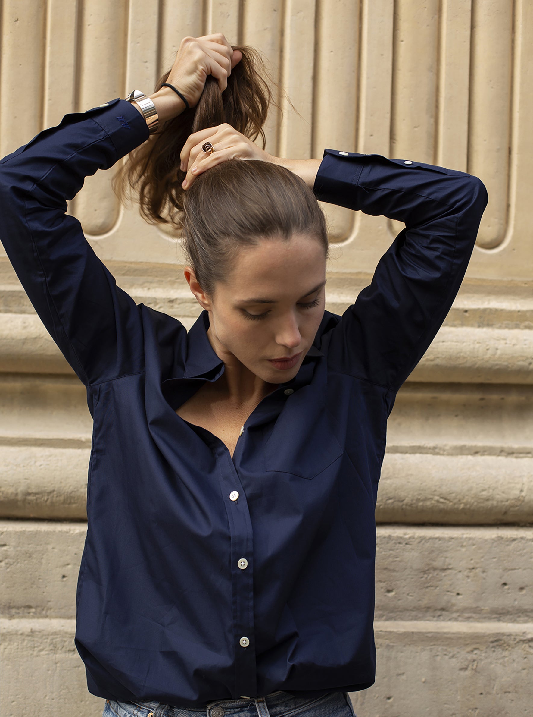 La chemise Charlotte présente une coupe droite légèrement oversize pour un confort et une silhouette décontractée mais élégante.