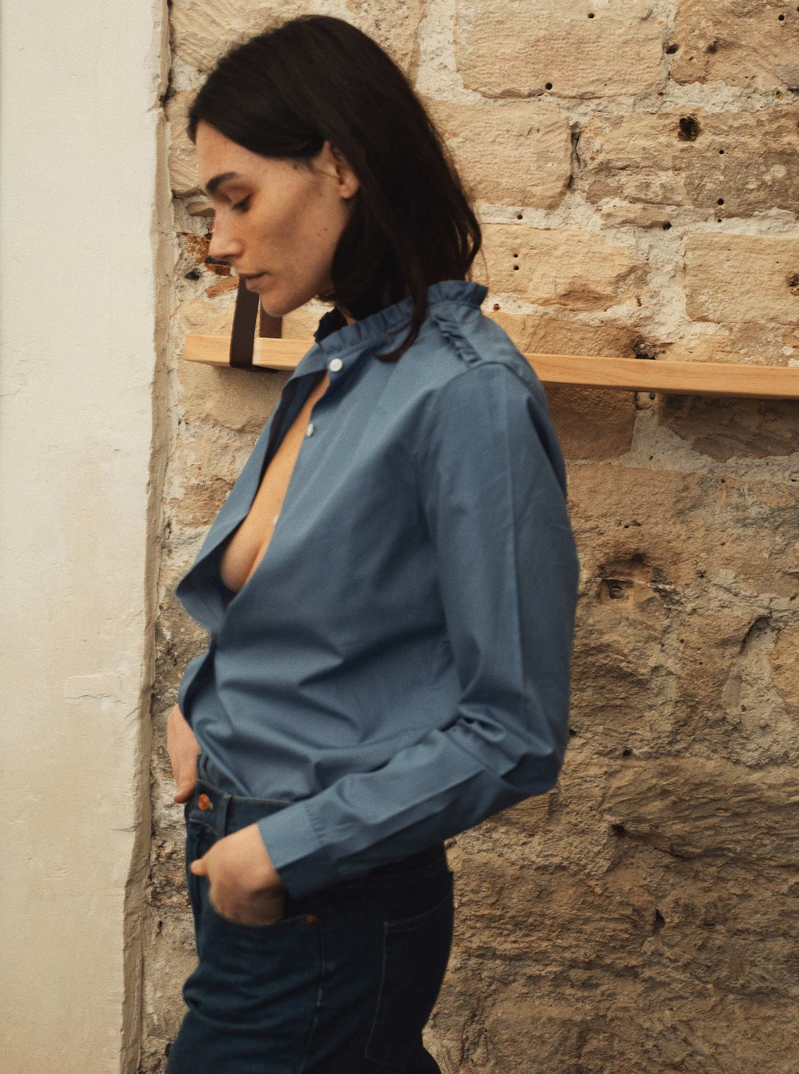 2 - Poitrine : Mesure à plat, aisselle gauche à aisselle droite sur un seul côté de la chemise