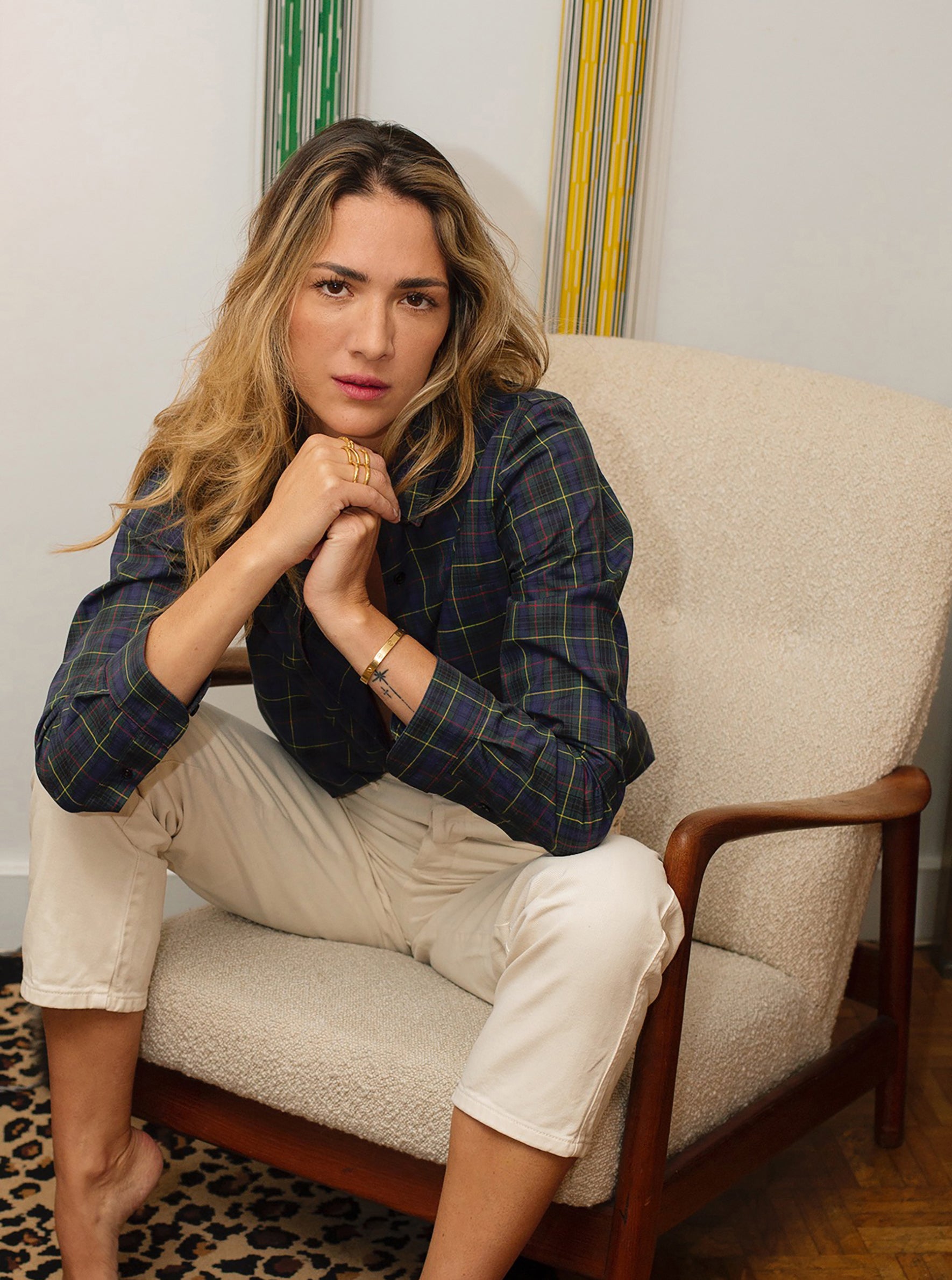 À titre indicatif : Julia mesure 1m75 (5'9) et porte une taille S (4/8 US)